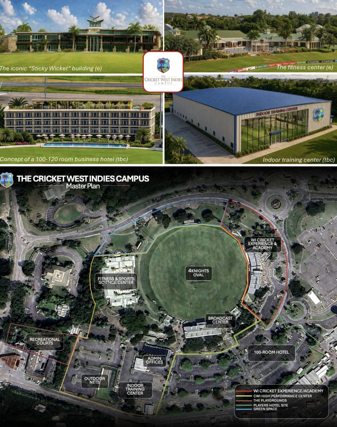 The CWI Campus will be developed as a 20-acre, fully integrated ecosystem, anchored by Cricket West Indies. It will combine elite cricket training, sports science, tourism experiences, and commercial activity in a single, dynamic location.