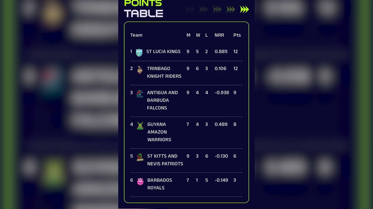 Headlines CPL UPDATE: TEAMS JOSTLE FOR PLAY-OFF BERTHS Published 4 months ago on September 8, 2025 By ABS TV Radio Defending champions St. Lucia Kings hold the top spot with five matches to go in the Republic Bank Caribbean Premier League group phase. Several players have also stood out with the bat and ball. Terry Andrew reports. Related Topics: Up Next SHAWN CHIDDICK HAS BEEN LOCATED Don't Miss USAIN BOLT NAMED AS ULTIMATE LEGEND IN NEW INITIATIVE TO PROPEL TRACK AND FIELD Continue Reading You may like Advertisement Latest Trending Videos Headlines4 hours ago DOMINICA, GUYANA ALSO IN TALKS WITH US TO ACCEPT THIRD-COUNTRY NATIONALS Headlines4 hours ago ST JOHN’S AND HARARE PLEDGE DEEPENED TIES AS NEW ZIMBABWEAN AMBASSADOR IS WELCOMED Headlines4 hours ago ABDF’S AGRICULTURE INITIATIVE FLOURISHES AT CAMP BLIZZARD Headlines4 hours ago TAXI ASSOCIATION FUMES OVER UNAUTHORIZED PARKING AND ILLEGAL OPERATORS Headlines4 hours ago ‘THE HAPI PROGRAMME KNOWS NO COLOUR’ – MINISTER RAWDON TURNER Entertainment7 days ago A&B’S GE’EVE PLACES SECOND IN QUEEN OF QUEENS CALYPSO CONTEST Headlines6 days ago PM GASTON BROWNE HOPES TO MEET T&T COUNTERPART TO DISCUSS CLICO/BAICO Headlines6 days ago GOVERNMENT SPENDS $40M ON LATEST RETROACTIVE PAYMENTS TO PUBLIC SECTOR WORKERS Headlines4 days ago RAI BENJAMIN AND FELLOW OLYMPIANS BASK IN YASCO TRAINING CAMP Local5 days ago A&B RATTLED BY FIRST EARTHQUAKE OF 2026 Local2 years ago ABS EVENING NEWS (LOCAL SEGMENT & WEATHER REPORT) 19.1.2024 Local2 years ago ABS EVENING NEWS (LOCAL SEGMENT & WEATHER REPORT) 18.1.2024 Local2 years ago ABS EVENING NEWS (LOCAL SEGMENT & WEATHER REPORT) 16.1.2024 Local2 years ago ABS EVENING NEWS (LOCAL SEGMENT & WEATHER REPORT) 14.1.2024 Local2 years ago ABS EVENING NEWS (LOCAL SEGMENT & WEATHER REPORT) 11.1.2024