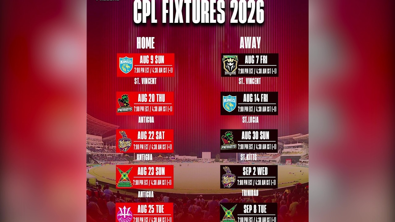 Headlines MATCH SCHEDULE RELEASED FOR ANTIGUA BARBUDA FALCONS IN 2026 CPL Published 54 minutes ago on April 28, 2026 By ABS TV Radio The Antigua and Barbuda Falcons have released their fixtures for the biggest party in sports, the 2026 edition of Caribbean Premier League (CPL). Terry Andrew reports. Related Topics: Don't Miss PM BROWNE COMMITS TO ACCELERATED ROADWORKS, MAJOR UPGRADES IN CITY WEST Continue Reading You may like Advertisement Latest Trending Videos Headlines54 minutes ago MATCH SCHEDULE RELEASED FOR ANTIGUA BARBUDA FALCONS IN 2026 CPL Headlines55 minutes ago PM BROWNE COMMITS TO ACCELERATED ROADWORKS, MAJOR UPGRADES IN CITY WEST Headlines56 minutes ago GOVERNMENT CONTINUES MAJOR REVAMP OF MENTAL HEALTH SERVICES Uncategorized58 minutes ago AMBULANCE COMMISSIONED AT GLANVILLES POLYCLINIC Headlines2 hours ago ELIGIBLE INDIVIDUALS URGED TO TAKE HPV VACCINE TO REDUCE RISK OF CERTAIN CANCERS Headlines4 days ago COACHES HAIL ‘TRANSFORMATIVE’ CWI CAMPUS PLAN Headlines4 days ago MICHAEL FREELAND COMMITS TO CONTINUED INFRASTRUCTURE WORK IF ELECTED IN ST GEORGE Headlines4 days ago PRIME MINISTER URGES ELECTORATE TO ‘STAY THE COURSE’ Headlines4 days ago RENAISSANCE PARK’ HOUSING PROJECT TO FEATURE ‘RENT-TO-OWN’ ARRANGEMENT – MARIA BROWNE Headlines5 days ago ANTIGUA AND BARBUDA SEEKS TO MAKE ITS MARK IN BEACH HANDBALL Local2 years ago ABS EVENING NEWS (LOCAL SEGMENT & WEATHER REPORT) 19.1.2024 Local2 years ago ABS EVENING NEWS (LOCAL SEGMENT & WEATHER REPORT) 18.1.2024 Local2 years ago ABS EVENING NEWS (LOCAL SEGMENT & WEATHER REPORT) 16.1.2024 Local2 years ago ABS EVENING NEWS (LOCAL SEGMENT & WEATHER REPORT) 14.1.2024 Local2 years ago ABS EVENING NEWS (LOCAL SEGMENT & WEATHER REPORT) 11.1.2024