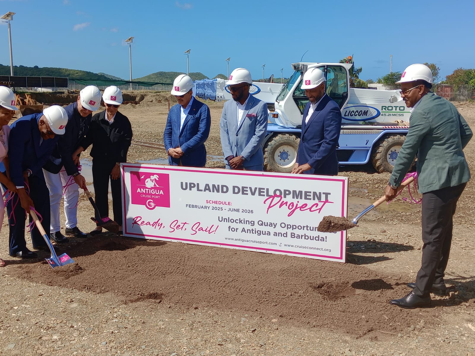 OFFICIALS TURN SOD SIGNALING START OF ANTIGUA CRUISE PORT UPLAND DEVELOPMENT PROJECT