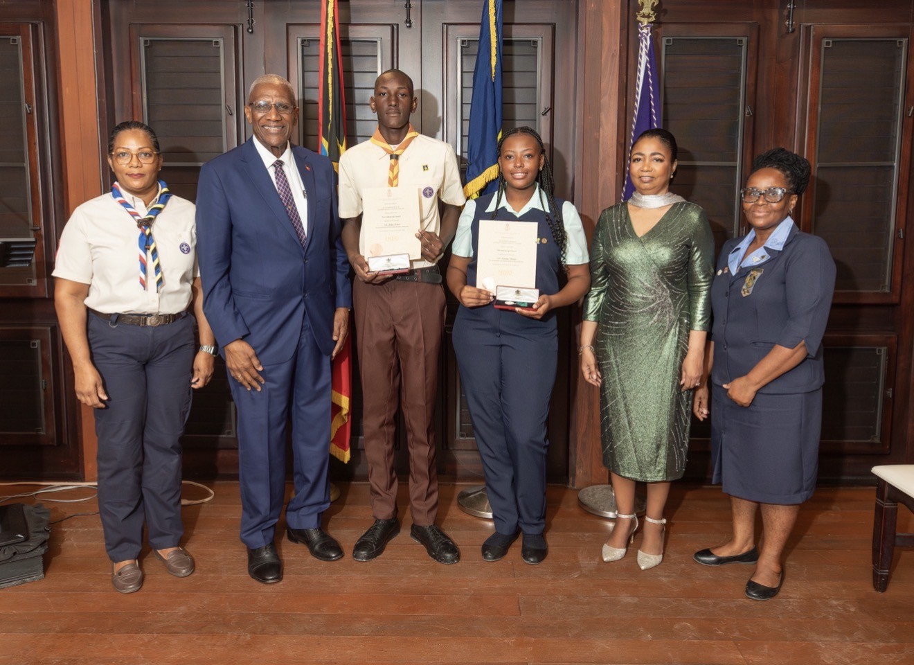 Also present at the event were family members of the recipients, Commissioner of the Girl Guides Mrs . Suzette Spencer-Burton and Scout Commissioner Mrs. Patricia Salmon.